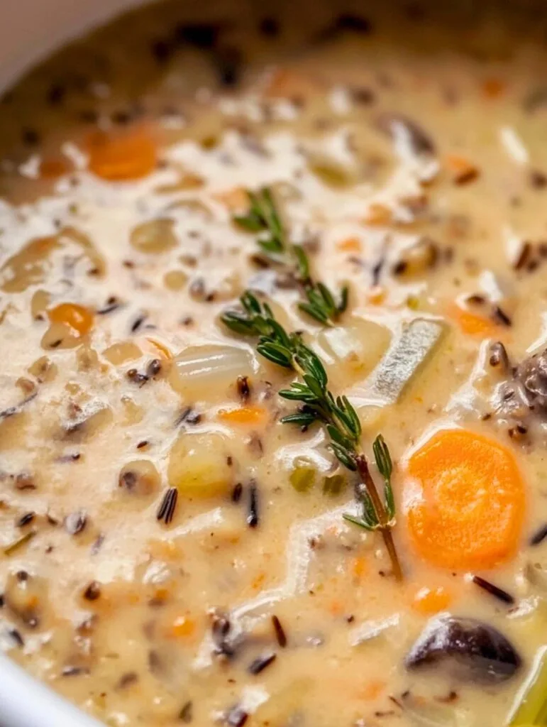 Stir in the wild rice, dried oregano, fresh thyme, sea salt, and black pepper. Pour in the vegetable broth and mix everything together until combined. - Cook the Soup: