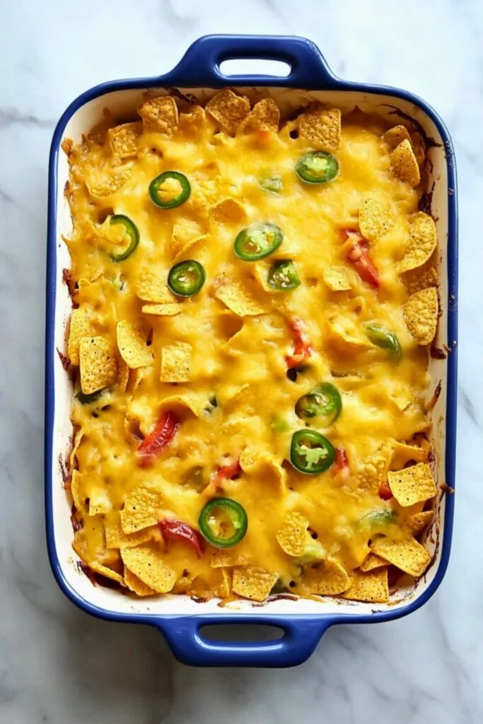 - Cover the chili and toppings with shredded cheese. Be generous—this is the layer that ties it all together!Place the dish in the preheated oven and bake for 15–20 minutes, or until the cheese is fully melted and bubbly.