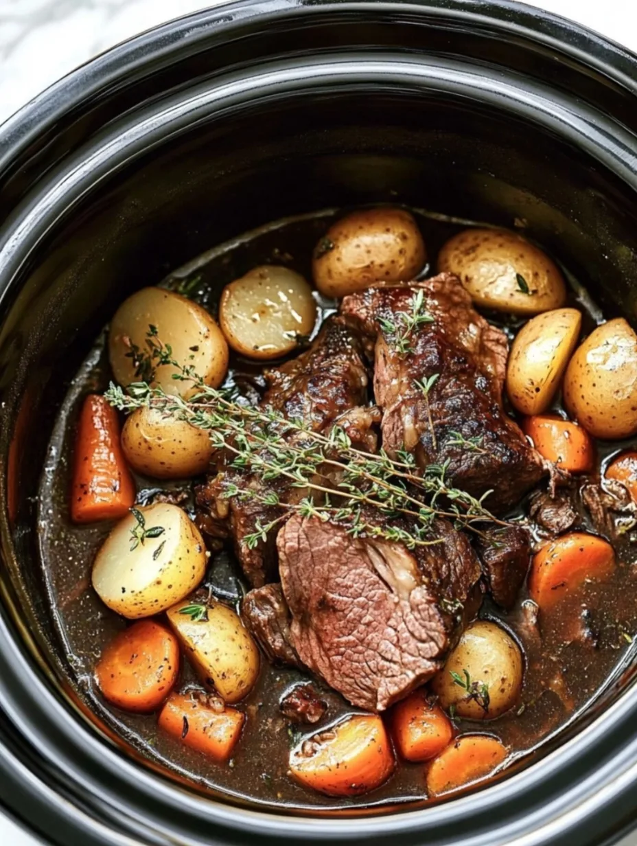 This Crockpot beef stew is a delicious twist on the classic! A splash of balsamic vinegar enhances the flavors, and the addition of fresh thyme makes this dish feel extra special. Perfect for a comforting family dinner.