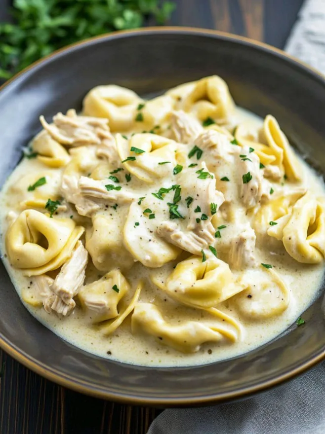 7. Easy Crock Pot Chicken Alfredo Tortellini