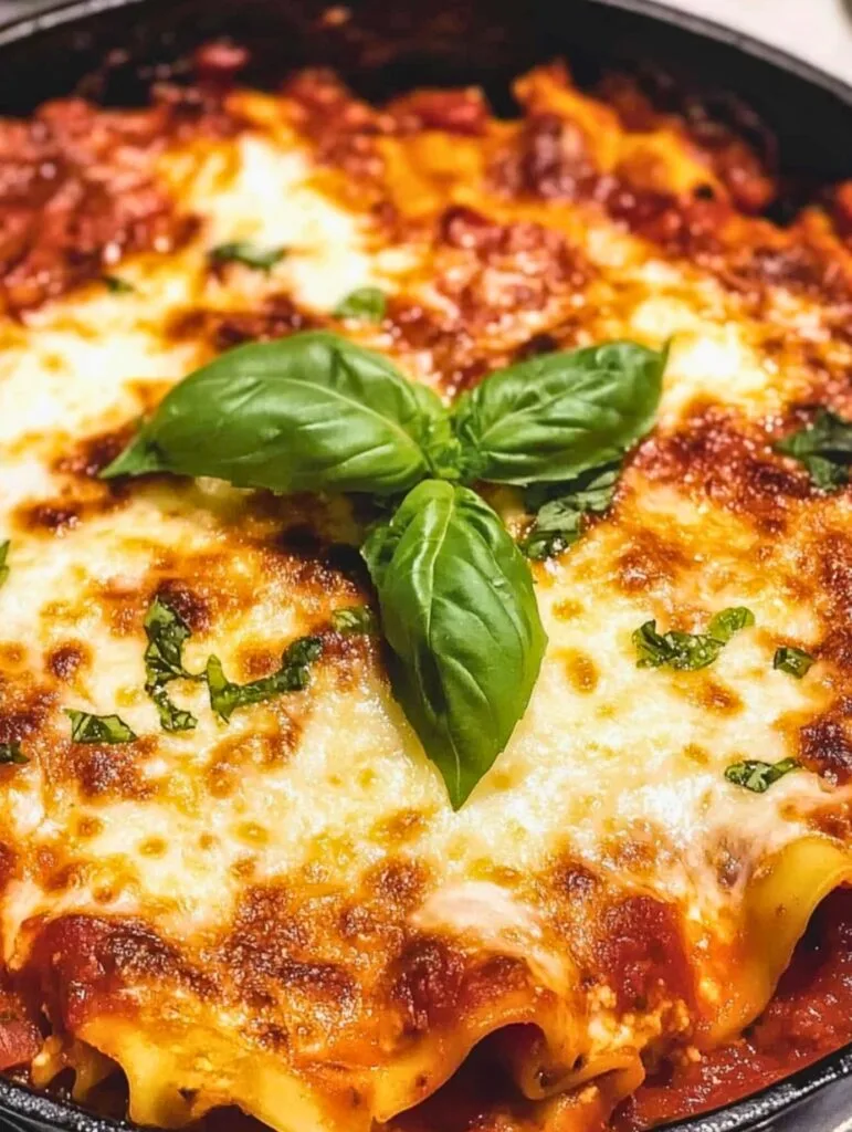 - Garnish and Serve: Remove the skillet from the heat and garnish with fresh basil leaves, if desired. Serve hot, and enjoy the cheesy, comforting goodness!