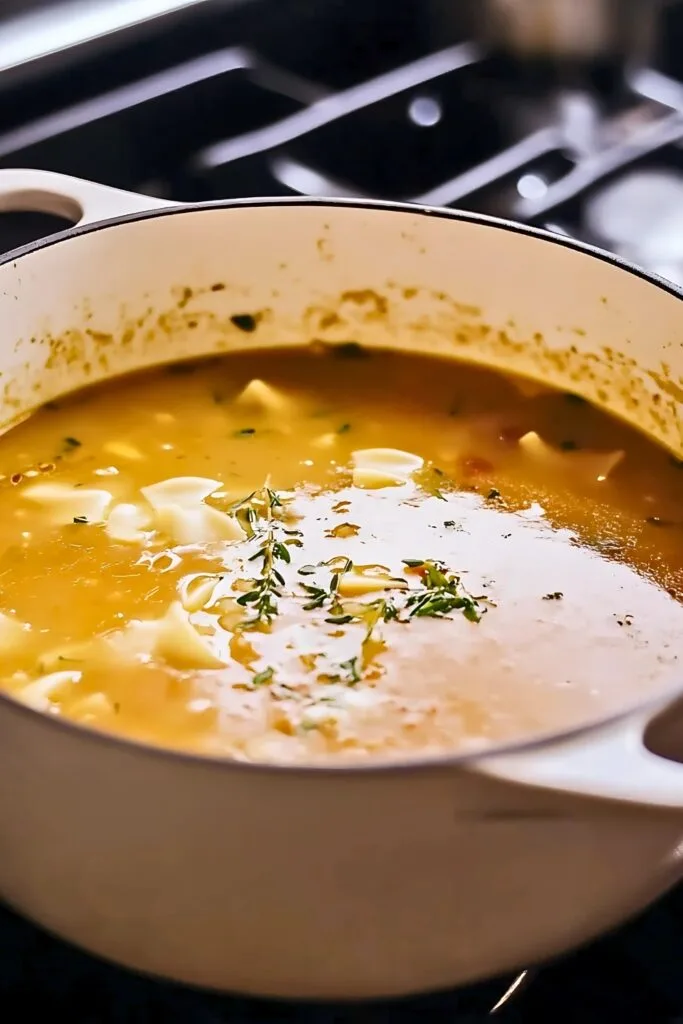 - Simmer the Soup: Pour in chicken broth and bring to a boil. Reduce heat and add broken lasagna noodles. Let simmer until noodles are tender, about 10-12 minutes.