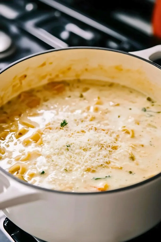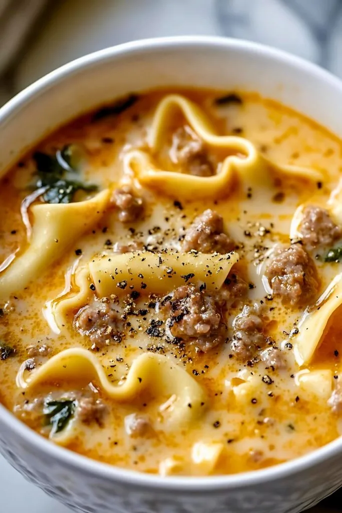 Comforting Italian-Style Creamy Alfredo Lasagna Soup