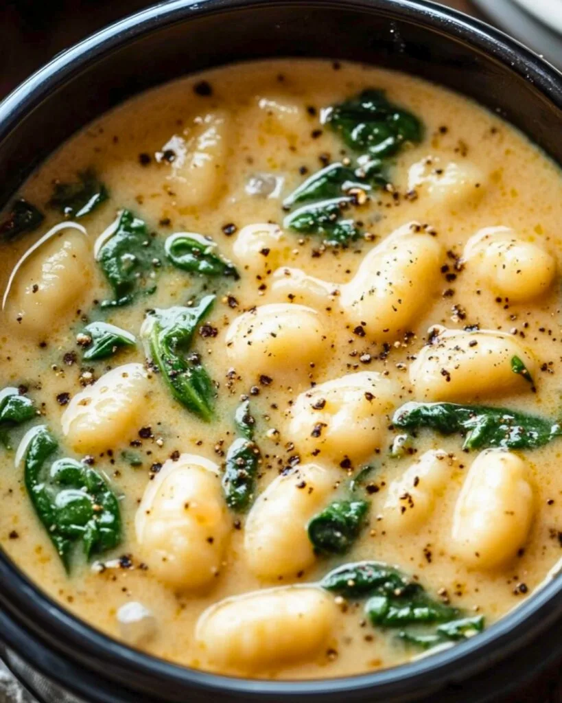 This creamy Crockpot Chicken Gnocchi Soup is a warm, comforting dish packed with tender chicken, soft gnocchi, and fresh spinach. It’s perfect for those cozy nights when you want a satisfying, yet simple meal for the whole family.