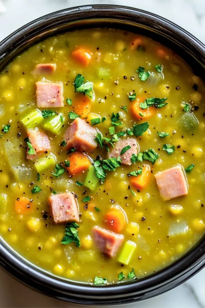 This easy and hearty Crockpot Split Pea & Ham Soup is the perfect dish for a cozy meal. Made with tender split peas, savory ham, and fresh vegetables, it’s a filling and flavorful soup that will keep you satisfied.