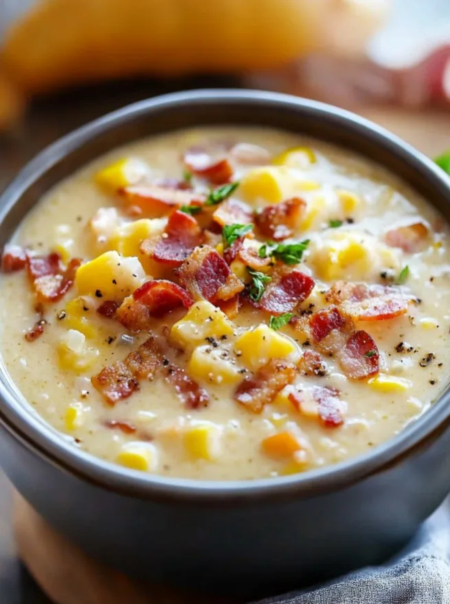 Slow Cooker Corn Chowder with Bacon offers a blend of convenience and comfort, perfect for chilly days. With just a few minutes of preparation, you can transform simple ingredients into a hearty, creamy soup that highlights the sweetness of corn and the smokiness of bacon.