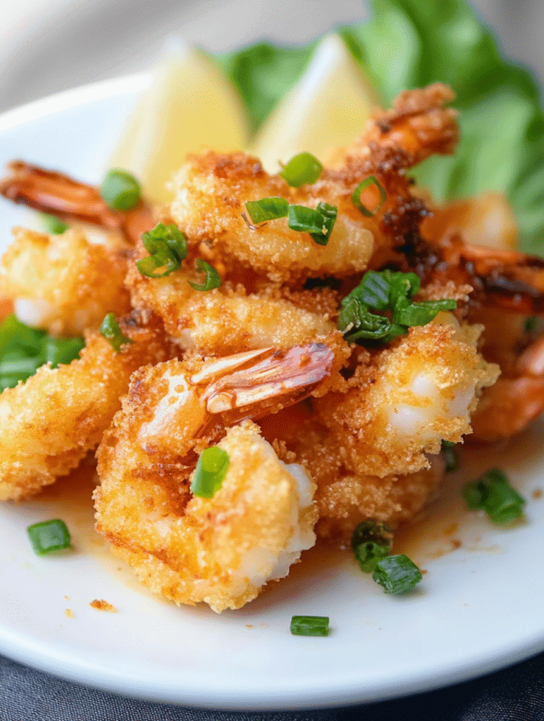 Serve the shrimp over loose leaf lettuce, sprinkling with chopped green onions if desired. The lettuce adds a crisp contrast and allows the shrimp to remain crunchy until the last bite.