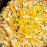 Melt the Cheese: Once the chicken and rice are cooked, turn off the crock pot. Stir in the shredded cheddar cheese until it’s incorporated. Place the lid back on for another 5-10 minutes to allow the cheese to melt completely into the dish, creating a gooey, cheesy sauce.
