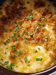 - Cover and cook on high for 2-3 hours, or until the top is golden and bubbly.