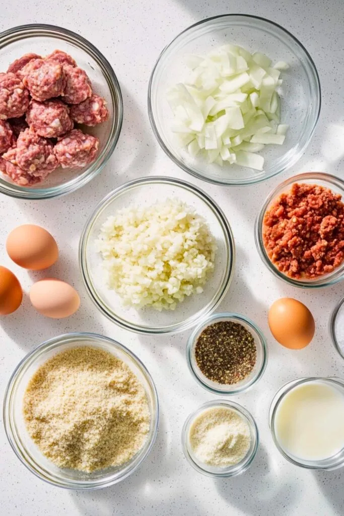 - In a large mixing bowl, gently combine the ground beef and ground pork. Add the cooked onions, soaked bread crumb mixture, eggs, Parmesan cheese, chopped parsley, crushed garlic, salt, black pepper, dried Italian seasoning, and red pepper flakes.Use a rubber spatula or your hands to mix everything together until well combined.Cover the bowl with plastic wrap and refrigerate for about 1 hour.Chilling the mixture makes it easier to shape the meatballs.