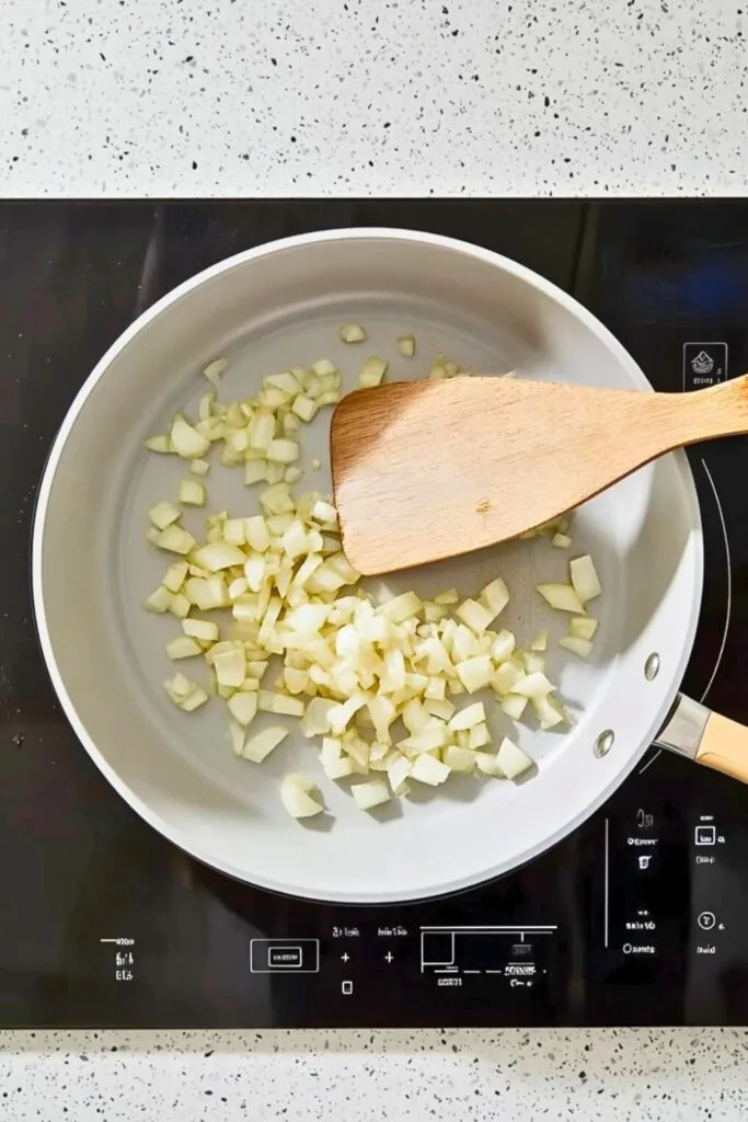 - Add the diced onion and cook, stirring occasionally, until the onion becomes soft and translucent, about 5 minutes.