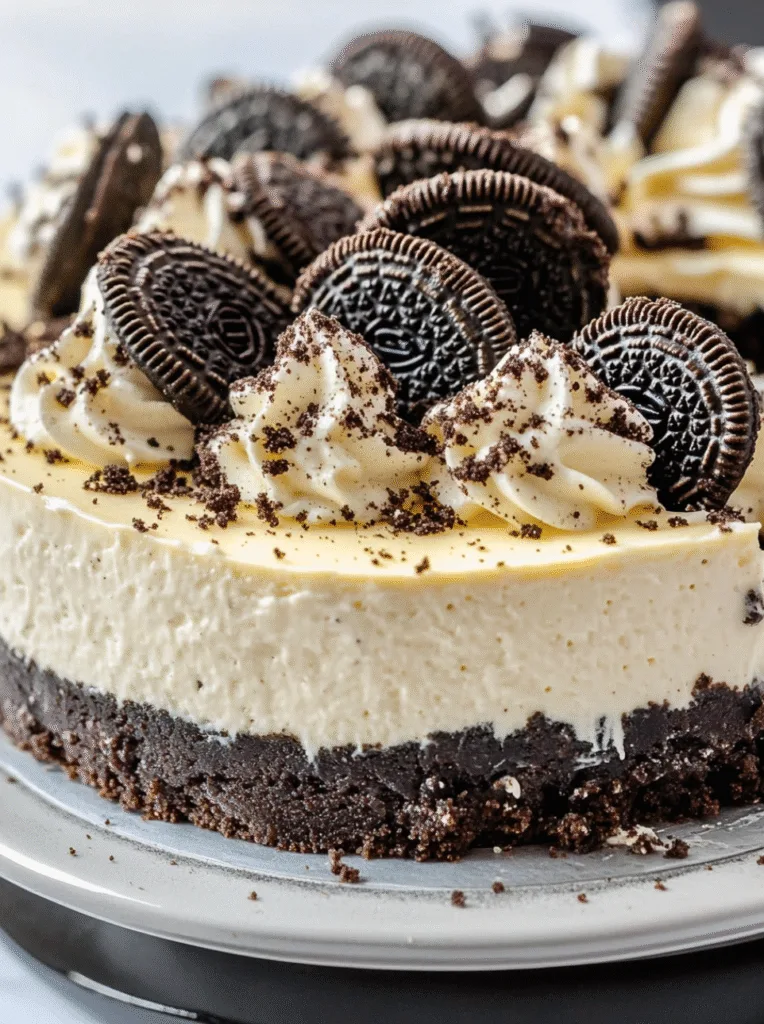 Decorate and Serve: Once fully set, run a thin knife around the edge of the cheesecake before releasing the springform pan’s side. If desired, decorate the top with piped whipped cream and additional Oreos.