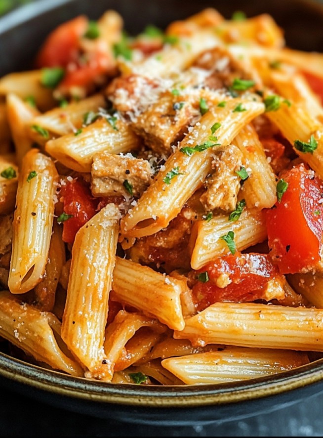 1. Cook the Pasta: Bring a large pot of generously salted water to a rolling boil. Add the penne and cook according to the package directions until al dente (firm to the bite). Before draining, reserve about ½ cup of the starchy pasta water. Drain the pasta and set it aside.