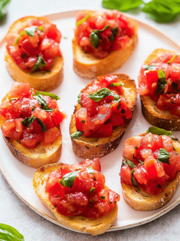 Bruschetta with Tomato and Basil is the quintessential appetizer that captures the essence of summer. It’s fresh, simple, and requires minimal cooking, making it ideal for those warm months. You’ll get bright flavors from juicy tomatoes and fragrant basil atop perfectly toasted bread.