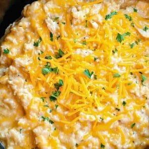 Melt the Cheese: Once the chicken and rice are cooked, turn off the crock pot. Stir in the shredded cheddar cheese until it's incorporated. Place the lid back on for another 5-10 minutes to allow the cheese to melt completely into the dish, creating a gooey, cheesy sauce.