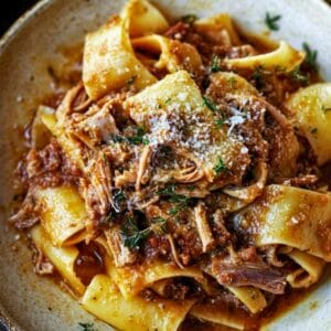 This duck ragu pasta combines tender, slow-cooked duck in a rich tomato sauce with hearty pasta for a comforting and satisfying meal.