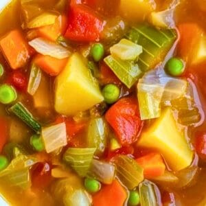 Stir in the frozen peas and continue to simmer for another 5 minutes. Since the peas are small and were frozen, they cook very quickly. Remove the pot from the heat and fish out the bay leaves to discard them. Stir in the optional apple cider vinegar or lemon juice. This final touch of acid will brighten the entire soup and make the vegetable flavors pop.