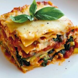 This beginner-friendly vegetable lasagna is a hearty, cheesy, and flavor-packed dish loaded with sautéed veggies, fresh spinach, and a simple homemade tomato sauce.